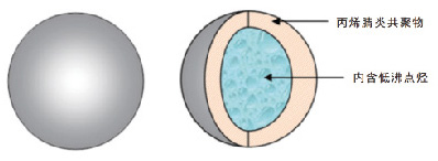 - 本品是一種核殼結構。壁材為丙烯腈類共聚物;芯材為液體狀低沸點有機烴。